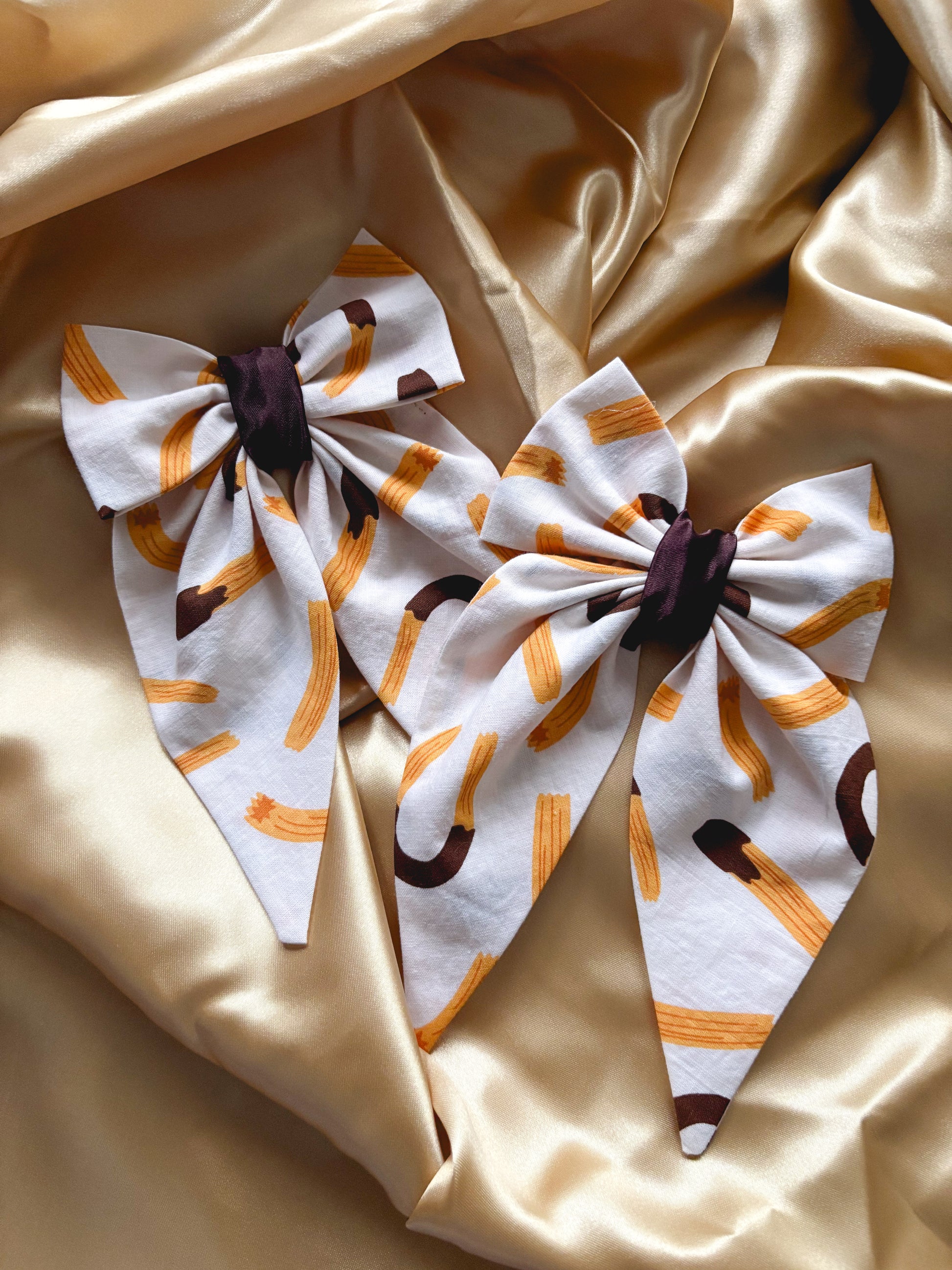 Handmade medium-sized hair bow made with cotton and satin fabric fabric.
