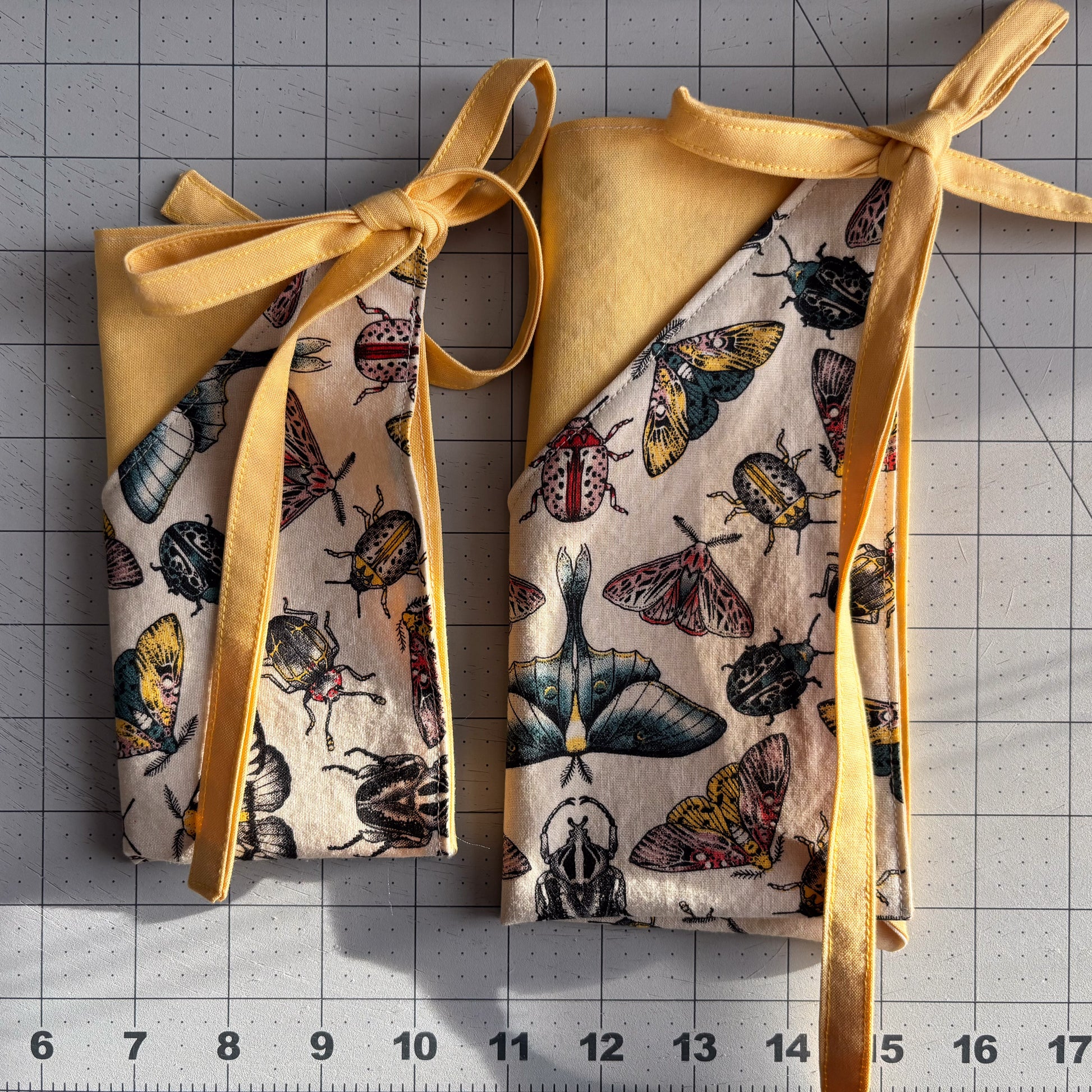 Handmade reversible triangle bandana featuring your favorite creepy crawlies.